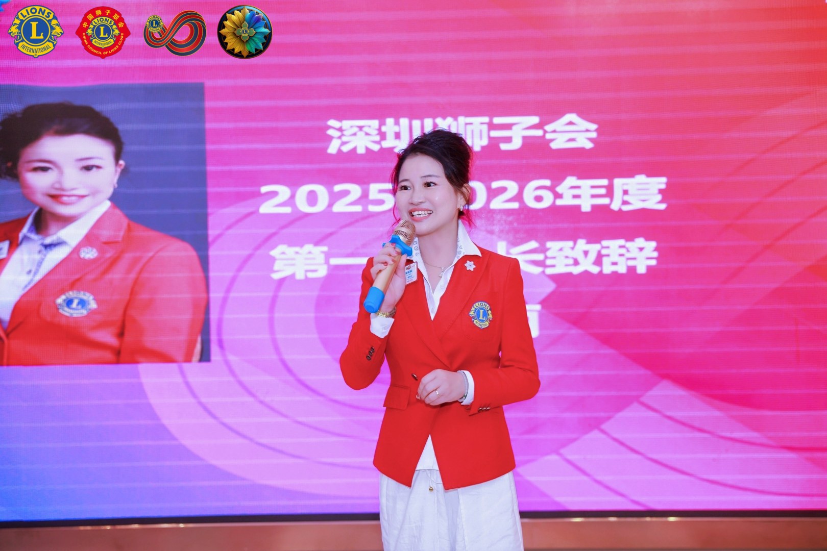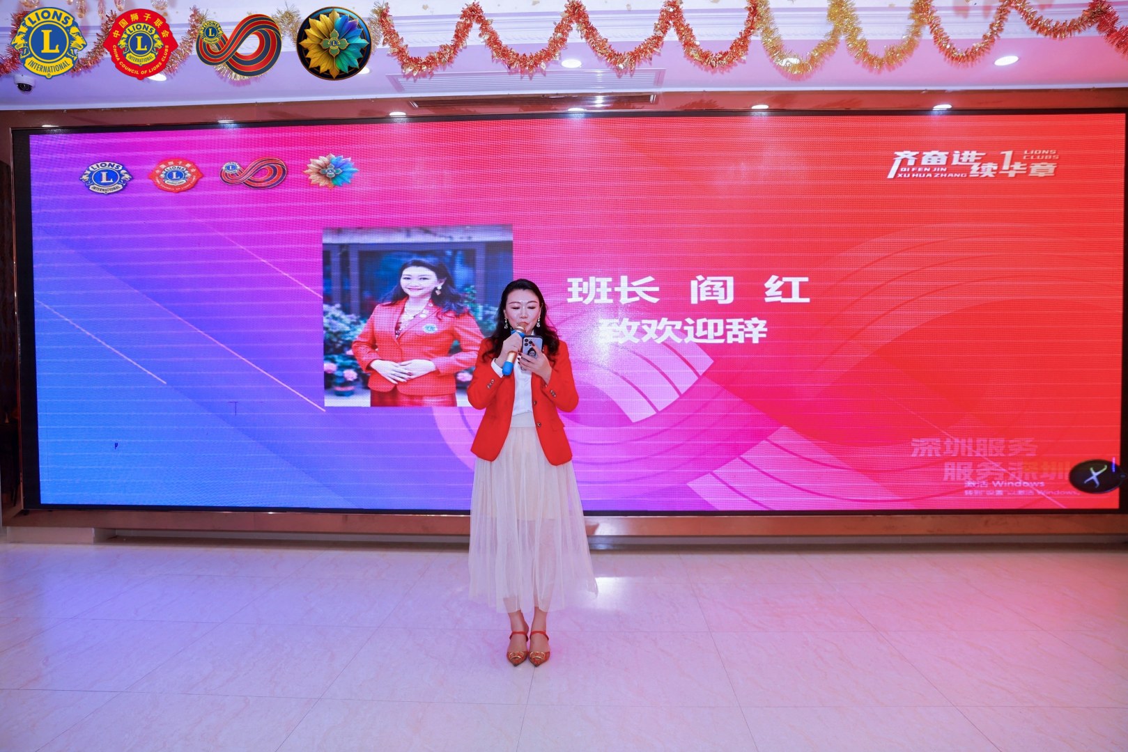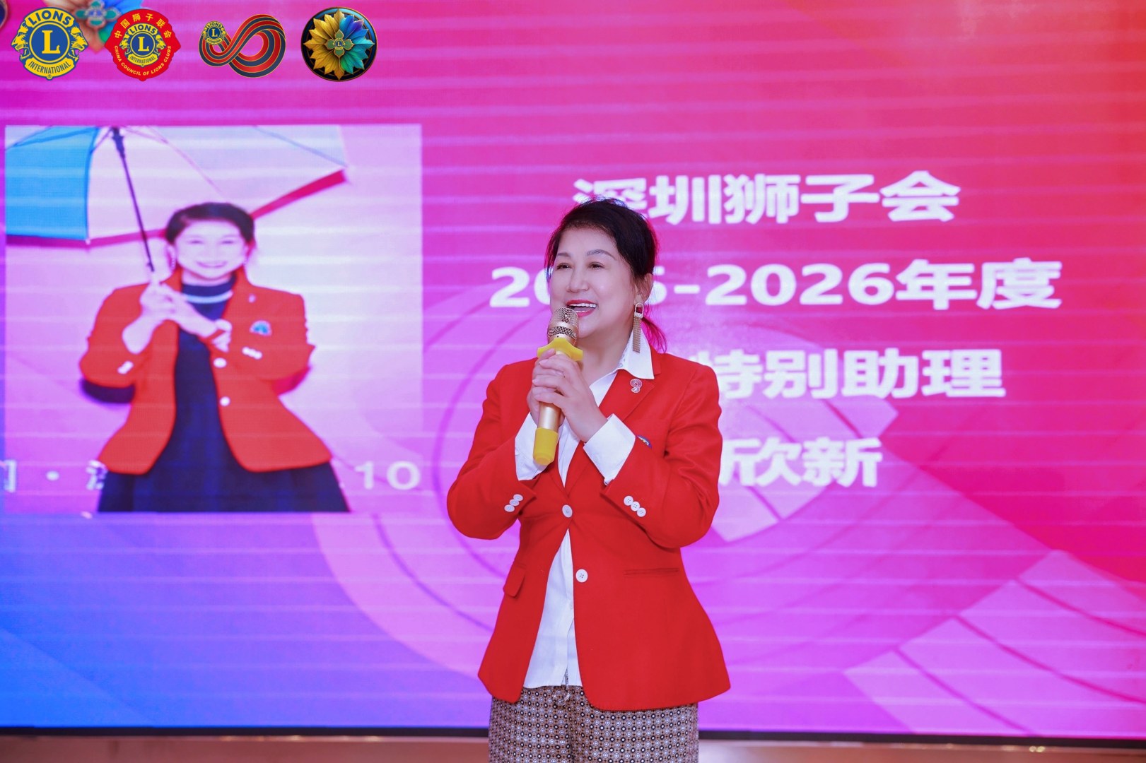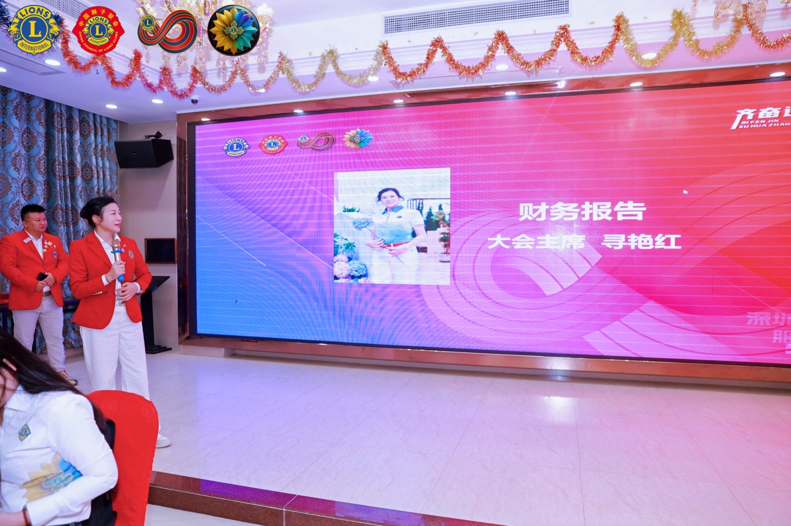 深圳狮子会第一副会长温姚丽讲话, 寄语首副团队们年度重心要放在自己的服务队,为明年做队长做好充分的准备,今年搞人搞钱,明年做优质的服务活动。